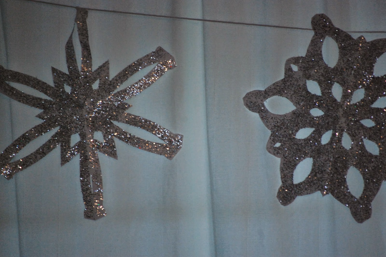 A couple of years ago I made this glittery snowflake garland to hang, and I'm not eager to put it away yet either.